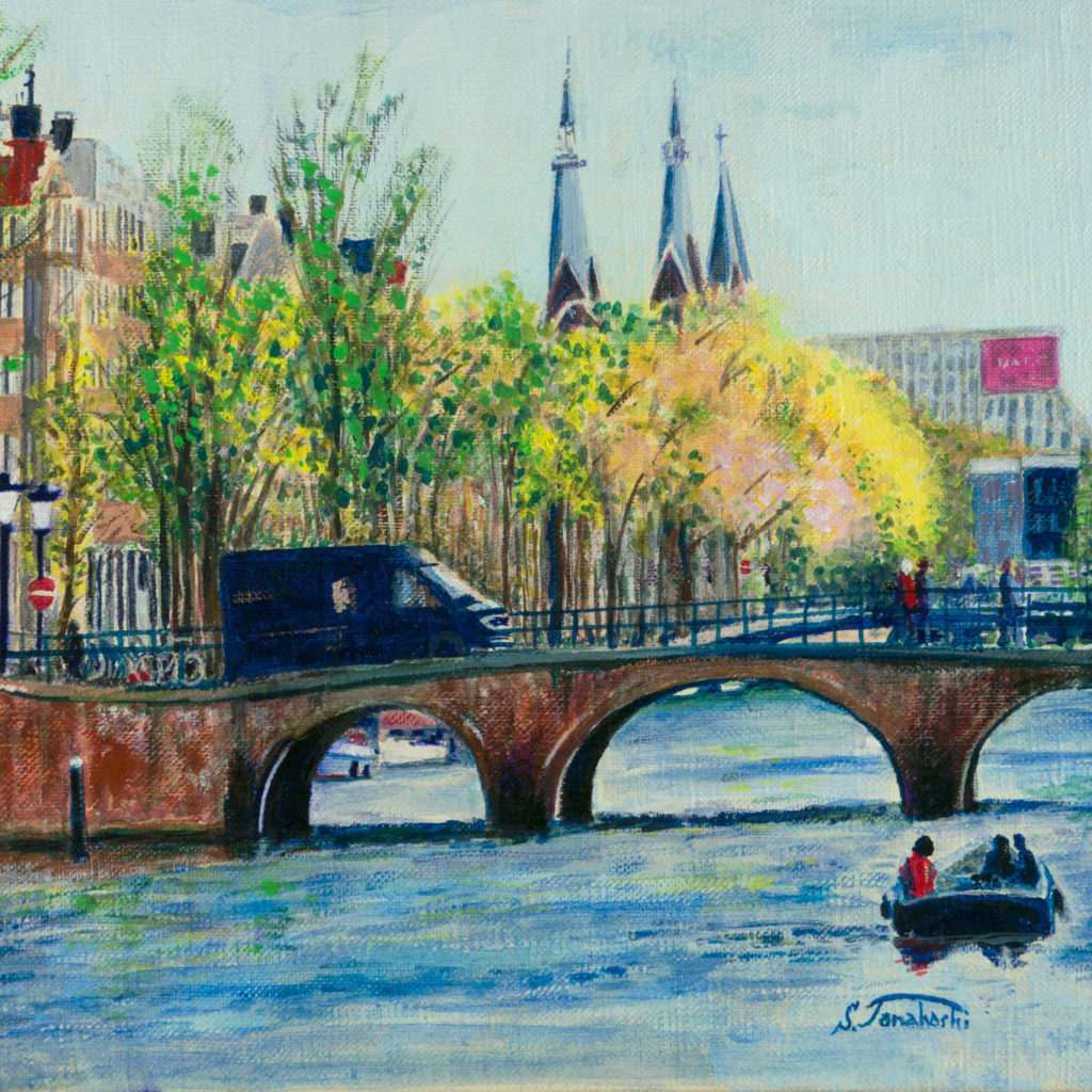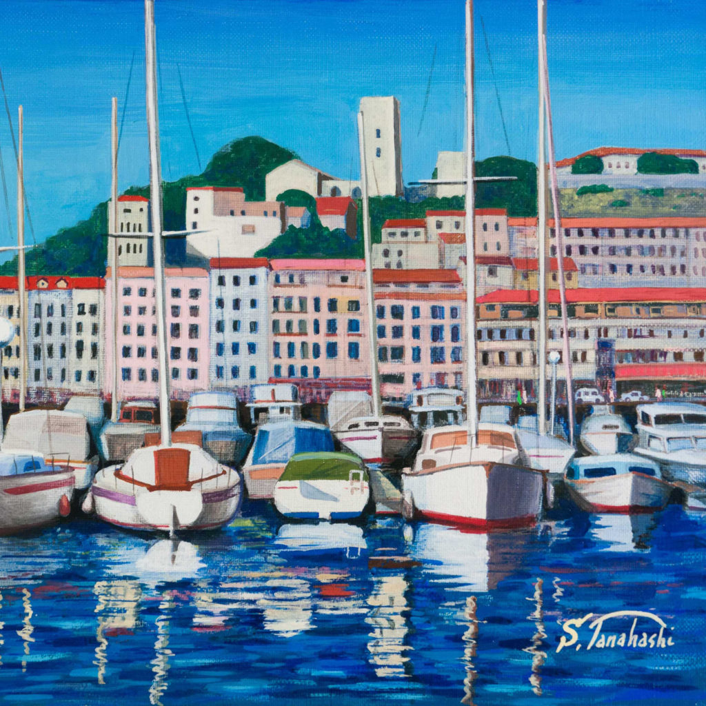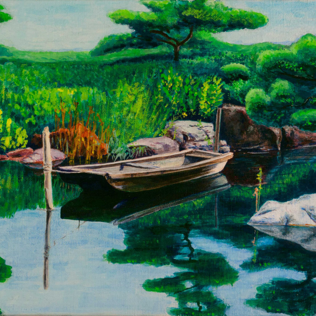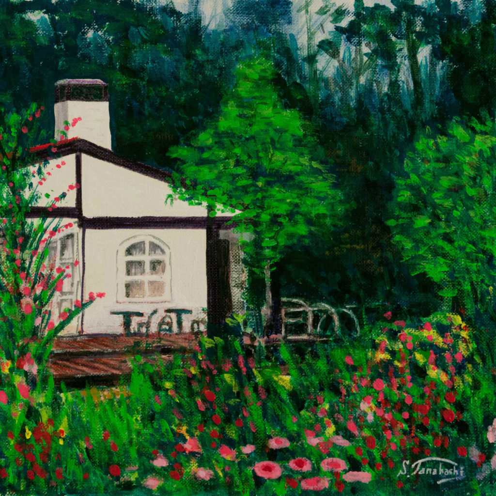 はじめは油彩画でしたが、直ぐにアクリル画に変更しました。それはアクリル画の方が色の彩度が良いからです。毎年1枚の絵を描いて、20枚を越しました。原画の大きさはF4、はがき4枚の大きさです。これらの絵の大半は年賀状の原画として使ったものですが幾分改良しました。
