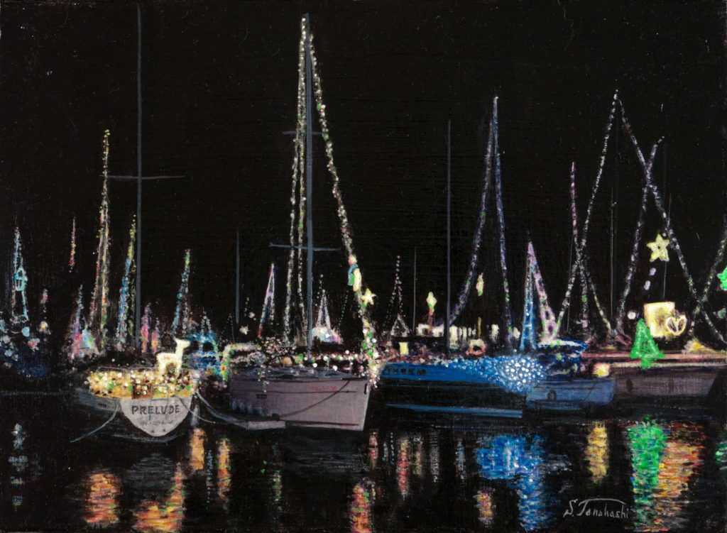 ヨットハーバーの夜はクリスマスから元旦にかけて華やぐ。